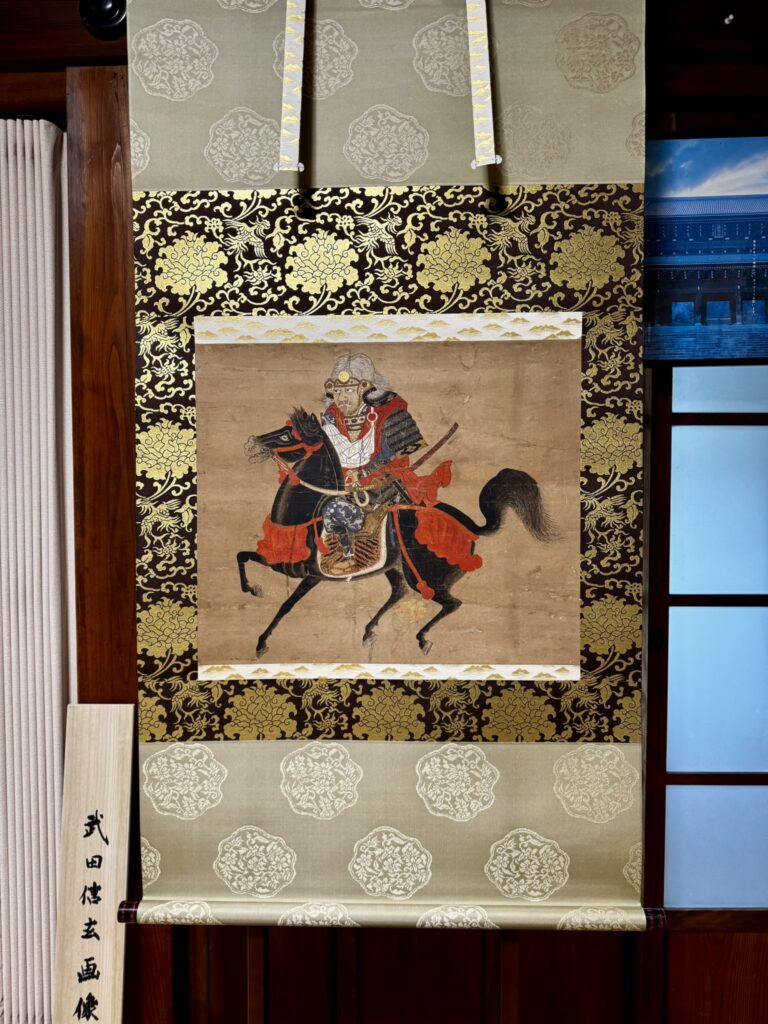 また、当山には戦国武将・武田信玄公騎馬像もございます。こちらは、当山檀家で、元・武田家の家臣であった高田家所蔵の逸品でしたが、高田家よりご寄進いただき、これを機縁として当山で修復、保管してまいりました。戦国時代、富士山の南麓は武田、北条、今川の三氏の勢力争いの境界線でしたので、この騎馬像の伝来の話はそうした名残を感じさせます。